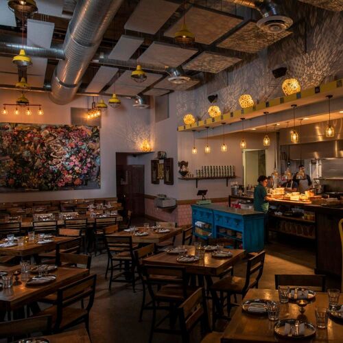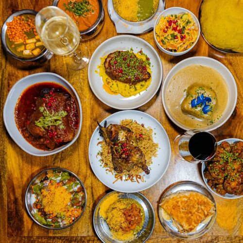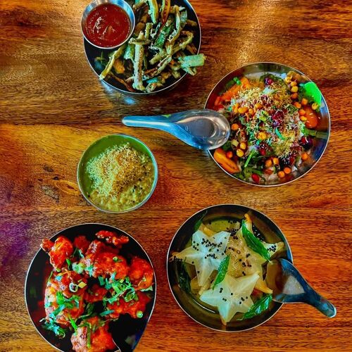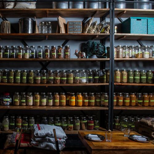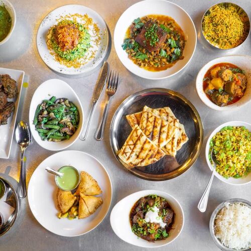 Niven Patel’s smash-hit restaurant is bound to put diners in the mood for the team's smartly spiced food with warehouse floors, mango wood tables and a wall lined with rows upon rows of spice jars.