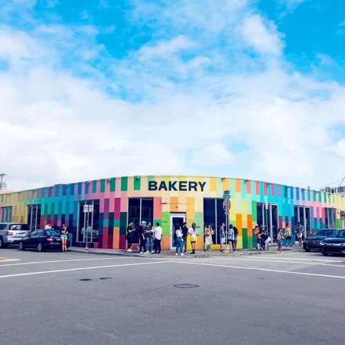 This kosher bakery and café is located in hip Wynwood and welcomes diners with a color-splashed façade.