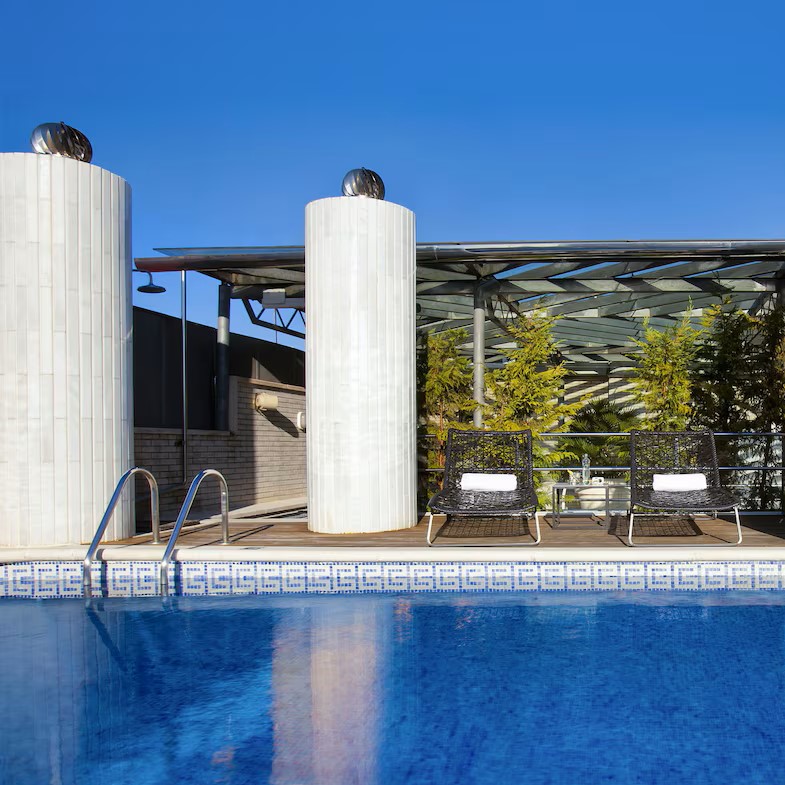 Only in architecturally adventurous Barcelona would one find a downtown grand hotel in a style like this; Claris Hotel & Spa GL is a postmodern mélange of the modern and the classic, visible from a glance at the exterior—the 19th-century shell of the Vedruna Palace remains, but it’s as though the palace’s roof has been removed, and the taller, narrower, modern metal-and-glass Hotel Claris dropped in from above.