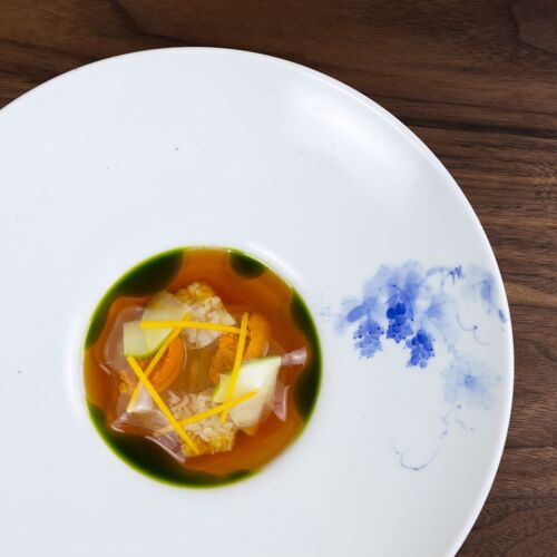 In the beating heart of Koreatown, take a freight elevator up 16 stories to find this elegantly appointed retreat. Echoing a traditional Korean home, guests are welcomed with snacks and drinks before being escorted to the dining room, where a minimalist design is juxtaposed with views of the Manhattan skyline. Chef Shin Chang-ho offers a Korean tasting menu that feels both traditional and contemporary and exudes calm, collected refinement. A deconstructed pheasant mandu with foie gras and morels is a remarkable feat while spotted prawn and geoduck clam is dressed with vivid green perilla oil made in house from imported seeds. Desserts and confections are beautiful to behold and equally delicious to finish. A cup of warm sunchoke tea brings the evening to a close.