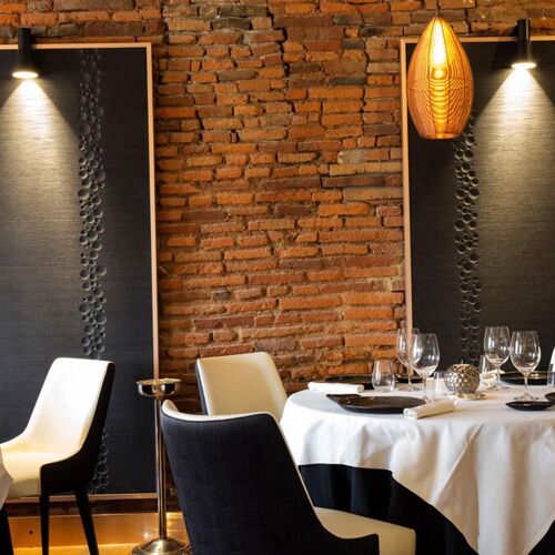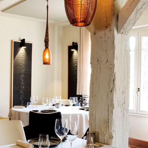 Once a coaching stop on the Camino de Santiago, this characterful Gers house is the site of a handsome dining room that blends historic (beams, bricks and tiles) with modern (light fittings, furnishings, tableware) details. Chef William Candelon’s culinary score is a delicious patchwork of hearty country fare and contemporary sobriety, in a bid to showcase first-class ingredients: lamb sweetbread, morel mushrooms, truffles, guinea fowl, Challans duck.