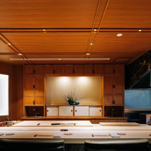 Even if you lived next door, omakase with Chef Masaki Saito would still feel like a faraway adventure. The foyer's marble staircase, a 200-year-old hinoki counter and traditional Japanese paneling and woodwork set the stage as he slices, scores and sauces the great treasures of the sea. For a serious sum, you will find Botan shrimp with uni sauce and hanaho, and eat melting slices of toro burried under a blizzard of white truffles. Fish comes exclusively from Japan, and for the nigiri, he uses a prized varietal from Niigata prefecture, warm and tinged with his special blend of aged vinegars. Laughter fills the air, thanks to Saito and his jovial team, and for a few hours, the world outside melts away.