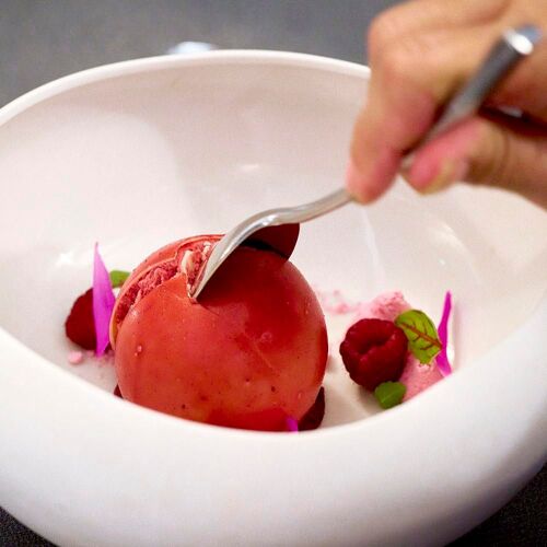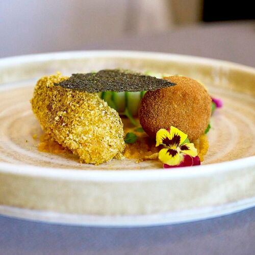 Fontaine Daniel is the epitome of a French country village steeped in history and the birthplace of the famous toiles de Mayenne fabrics. Overlooking a pond and the forest, this restaurant is housed in a former outbuilding of a Cistercian abbey, which became the hub of this textile manufacturing enterprise in the 19C. Chef William Blondel, who has worked as far afield as New Zealand, cooks primarily with local produce that he doesn’t hesitate to enhance with modern and creative twists of his own creation. It’s unique, sometimes unsettling, but always hits the spot, depicted by dishes like mackerel, cauliflower and a coffee-based sauce!
