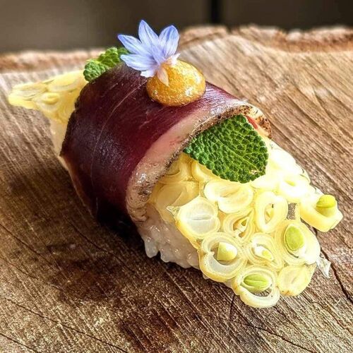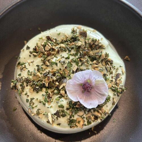 In the countryside, in the Haut-Saint-François (Eastern Townships), this rustic farm is the joint venture of market gardener Yannick Côté and Chef Daniel Charbonneau (formerly of L'Empreinte in Sherbrooke). Chef Charbonneau welcomes the 15 or so guests per service on a covered patio equipped with a brasero, on which he barbecues skewers of venison, sweet onions, and artichokes in sauce diable, accompanied by a glass of local cider, talking guests through the cooking process. Once in the timber-decked dining area with its upcycled furniture, tuck into the single set menu that showcases produce from the local area and from this farm surrounded by market gardens. It's an experience to be savored as much for the food as for the inviting atmosphere and warm hospitality.