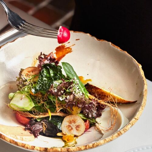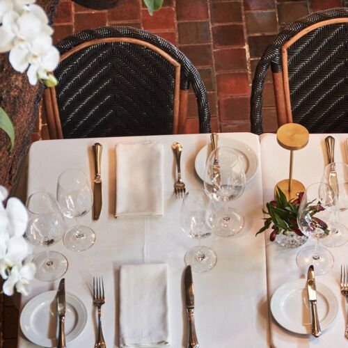 An authentic French bistro, both in terms of its black façade and red awning and its elegant, welcoming interior. The main dining space is complemented by a charming terrace at the entrance, adorned with two impressive trees and with candlelight in the evening. Some of the tables are also occupied by adorable, large red teddy bears that add to the delightful atmosphere. Understandably, the culinary focus and star of the show is classic French cooking with a contemporary touch that is showcased by top-quality ingredients and delicately prepared dishes. These include the grilled foie gras with figs, served with bitter chocolate, and the classic roast duck breast with orange sauce accompanied by gaufrettes potatoes. The incredible Eclair XXL provides the perfect finale!
