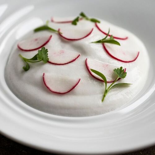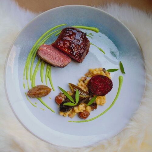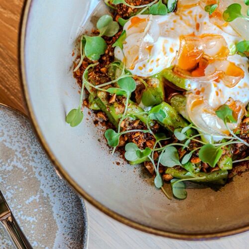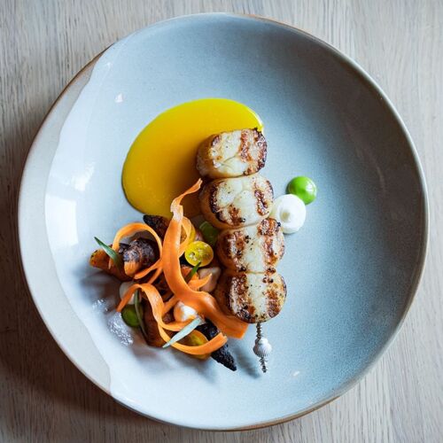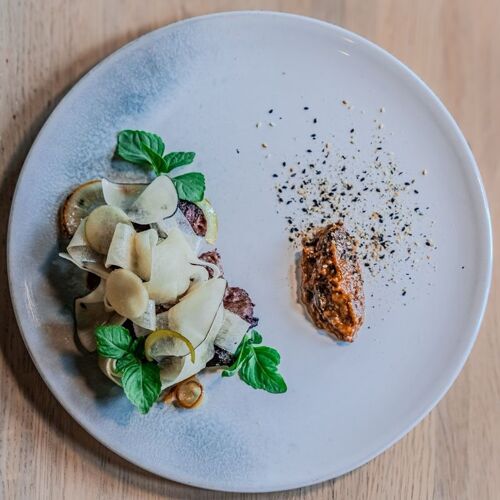 Here the name embodies a pastoral suburban ideal, while the strikingly chic space flaunts a certain airy forest-meets-island aesthetic—both making nods to Chef/owner Toby Archibald’s New Zealand roots. Along similar lines, his cuisine walks a line between flashiness and substance, featuring broadly international flavors anchored by classic French techniques, while showcasing eye-catching presentations and an occasional flair for the dramatic. Take for example an indulgent savory éclair filled with king crab, topped off with a soigné ruffle of feather-light smoked avocado mousse and tangy dots of Meyer lemon, or a seabass grilled “en papillote” inside a banana leaf, served with a vibrant mango salsa and a creamy macadamia nut sauce.