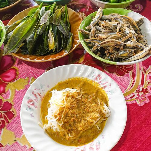 Across from a Chinese shrine, this self-service buffet has been drawing devotees for over 30 years with its tasty khanom chin and four curry options to mix and match. Pick from a wide range of condiments, fresh vegetables, boiled egg and crispy anchovies. Lunchtime is always busy, so arrive early.