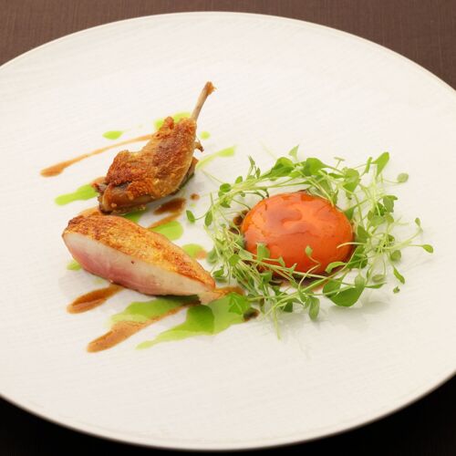 The name is French: saucer used as a verb, to pour sauce or to drizzle sauce on bread. The standard fare is what the chef terms ‘saucer’: freshly baked bread on one plate and a sauce on the other. Consommé drawn over a period of three days is a key ingredient. Morel mushrooms in spring and sweetfish in summer impart seasonal flavours. As an apprentice, the chef was appointed saucier, sauce master; his confidence shines in his work today.