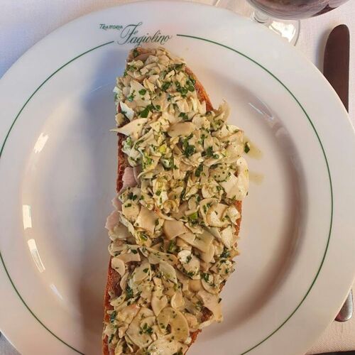 An authentic, traditional, family-run trattoria with characteristic dining rooms serving local, well-made fare, without unnecessary complications, letting the ingredients shine. Which ones? Highlights include homemade fresh pasta, a variety of meats, and exceptional mushrooms, the true stars of the table. For dessert, don’t miss the excellent puff pastry and apple rose with cinnamon ice cream. And take the time to enjoy a stroll through the small yet picturesque village!