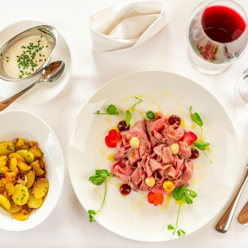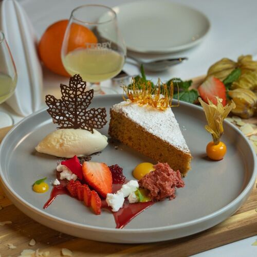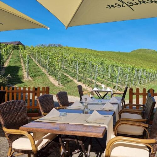 After almost 30 years in Mallorca, Czech-born Martin Sklenar and his wife Lucie swapped the Balearic island for the vineyards of Oberkirch. Here, they propose an interesting blend of regional (Baden), Mallorcan and Bohemian-inspired cuisine. This is served in a cosy interior with a slightly rustic feel, or out on the wonderful terrace known as the Weinberggarten. The ingredient-led dishes can be accompanied by your choice of wine from a predominantly regional selection.