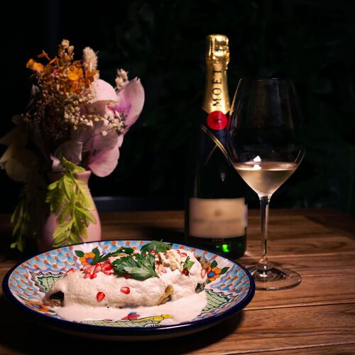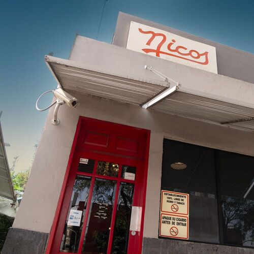 Nicos empezó a funcionar como un humilde puesto de refrescos y snacks hasta que un cliente vio a un empleado deleitándose con su comida y quiso pedir lo mismo. El hijo del fundador ejerce hoy de chef, supervisando un menú degustación de cocina mexicana clásica en el que destacan platos como el taco de cecina crujiente sobre tortilla de maíz, que destaca por su intensidad, o los camarones al tamarindo, un platillo lleno de sabor y chispa. La enchilada rellena de tasado y frijoles y bañada en salsa oaxaqueña de pixtle es un platillo aromático y sabroso que gusta a todos, mientras que el aguachile pega fuerte gracias al picante de los chiles.