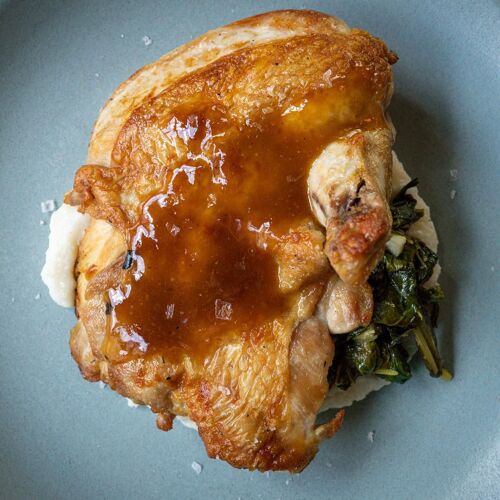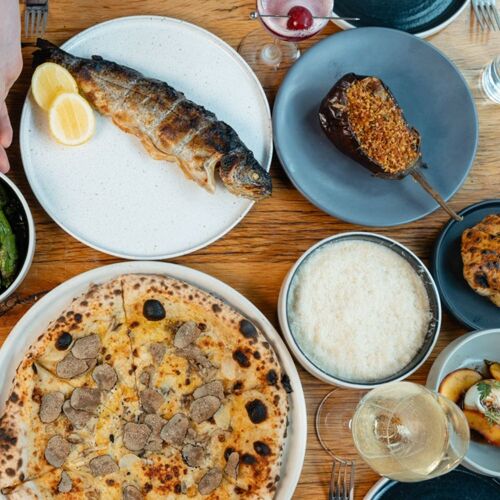 Concrete floors, cream walls and an open kitchen with a wood-burning oven set an industrial-chic tone at Basta. Snag a spot at the bar and you'll have a front row seat to the culinary action, where family-style, contemporary Italian-American cooking is the name of the game. Start things off right with a shareable starter like burrata or the silky chicken liver mousse with peach mostarda that is sided by crusty bread from next-door sister bakery, Dry Storage. Definitely don't skip the smoked dark green olives—they're an unexpected delight. From there, entrees are satisfying, especially the half chicken. End on a sweet note with a plate of five beignet-style doughnuts dusted with powdered sugar and a dulce de leche Chantilly cream.