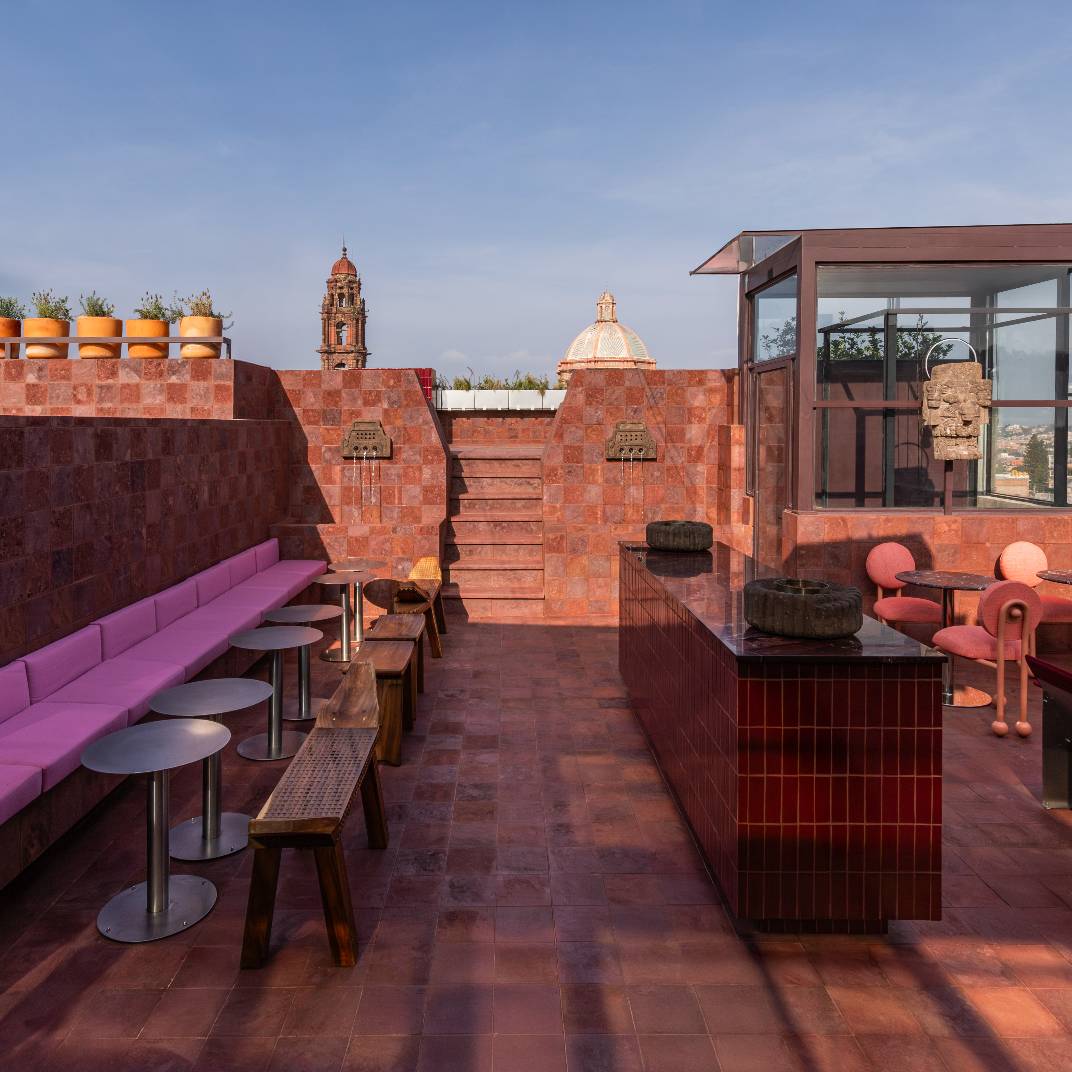 Las habitaciones transmiten nada más verlas una sensación de frescura y minimalismo, palpable sobre todo en sus baños alicatados de estilo vintage y en sus angulosas camas con dosel. Pero es necesario fijarse en los detalles: los muebles hechos a medida y los objetos decorativos realizados por artistas mexicanos rinden homenaje a las tradiciones artesanas de todo el país. En el bar de la azotea, Tonana, el equipo de mixólogos se inspiran en la diosa madre para crear cócteles con plantas medicinales y productos vegetales, mientras que el restaurante COMITÉ fusiona sabores internacionales con la cocina mejicana moderna.