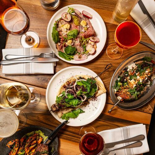 The team at the helm of this trendy restaurant with an upbeat atmosphere is a group of friends headed up by Israeli chef Elior Benaroche, once chef at Balagan and an associate of Assaf Granit since his early days in the heart of Jerusalem's Old City. Tapping into the Levant and the chef's family history, this cuisine is a festival of spices and condiments: hilbeh (fenugreek paste), ezme (Turkish salad of charcoal-roasted vegetables), tahini, zaatar, harif (marinated chillis), tulum (Turkish cheese) – rounded off by a fine cocktail menu. A culinary voyage.