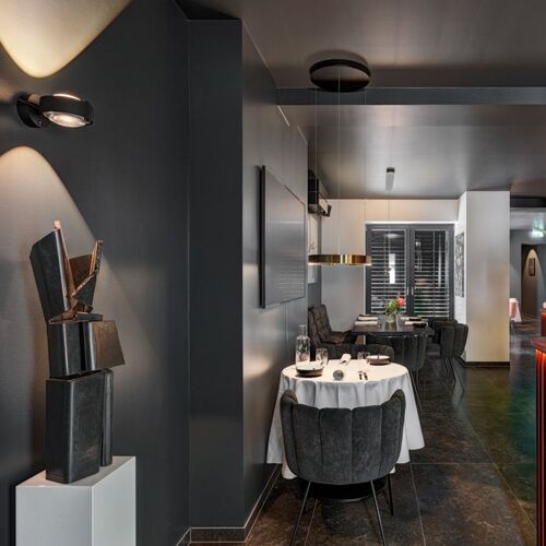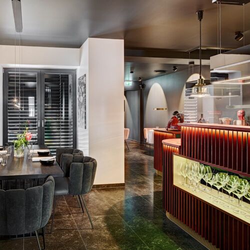 "Dinner is ready" is the slogan here. You ring the doorbell before being escorted into this somewhat hidden little restaurant with a modern, minimalist decor. You are shown to your table in a pleasantly intimate living room-style interior – with a small open kitchen and just a handful of tables, it makes for a private atmosphere. The service comes with a personal touch: your cordial hostess, Yvonne Specht, after whom the restaurant is named, will also recommend just the right wines from the extensive list of top-draw international labels. In the kitchen, head chef Dirk Brendel cooks up an ambitious seven-course surprise menu in the evening, further embellishing it with a variety of additional small dishes. The menu is devised based on the season and the availability of the ingredients. The cuisine is classic and Mediterranean, but also includes international flavours.