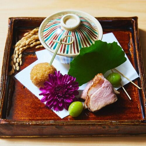 What Masakazu Nishiguchi pays attention to are creativity and a sense of season. He wants to make an impression, sometimes interweaving a well-balanced twist or two. With the first of each harvest, he avoids ostentation, preferring honest expression of inherent flavours. It is when a season nears its end that he turns creative. Bamboo shoots, for example, debut as simmered bamboo shoots; as season’s end draws near, they may appear in Japanese-pepper-and-soy sauce steak or in bowls of stew.