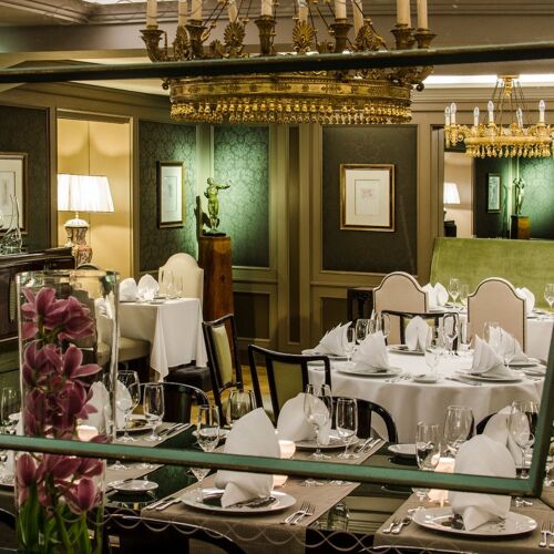 Classic elegance is the name of the game here. The restaurant is located in the hall of the Aria Hotel Prague – herringbone floorboards, chandeliers and interesting objets d'art contribute to the stylish atmosphere. With its magnificent view over Prague, the roof terrace is a huge draw in summer! The restaurant serves refined Czech cuisine, a signature dish being their kulajda – a mushroom soup with a poached egg.