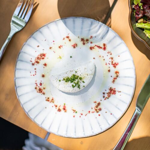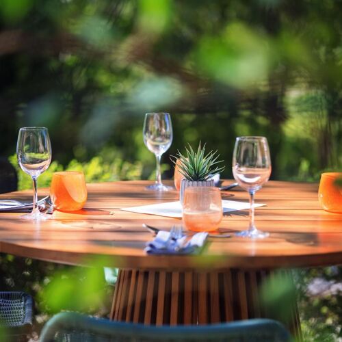 Chef Sébastien Sanjou pops in from his nearby restaurant (Le Relais des Moines in Les Arcs-sur-Argens) to supervise the cooking at this fabulous restaurant set in the cellar of a wine estate, one of the finest in the Haut Var. As you take in the superlative surroundings (a panoramic landscape of vineyards and olive trees outside and a spacious designer-inspired interior), you can savour fine seasonal Provençal cuisine that makes the most of the estate's wide range of produce (courtesy of the hen house, orchard, vegetable garden, olive groves). For example, vegetable pot-au-feu with fresh herbs; stuffed saddle of rabbit with black olives and creamy polenta; baked pear with almonds and vanilla cream – washed down with a fine organic wine from the estate. A number of guestrooms are available to extend your stay in style.
