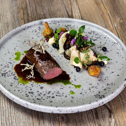 "Avant-garde Alpine" would be a good label for Vitus Winkler's cuisine, which is creative, firmly rooted in the local region and always very flavourful despite its complexity. The owner expresses his strong connection to his homeland and his love for nature and the mountains in his surprise menu, featuring plenty of herbs, berries, roots etc, as seen in dishes like the Pinzgau Angus beef with parsley root, black currant and larch. An intriguing touch: The menu is structured as a hike through the different altitude zones – from the village, through fields, river & lake, forest & meadow, up to the tree line, and to the alpine pasture, culminating at the summit. This fine dining restaurant is housed in Hotel Sonnhof, which dates back to 1928 – both are run by Vitus and Eva-Maria Winkler, who represent the fourth generation of their family to be at the helm. You sit in a clearly modern designed ambience and are cared for friendly and attentively. If you want something really exclusive, book at the ‘kitchen table’ - here up to 14 people can be seated directly in the kitchen.
