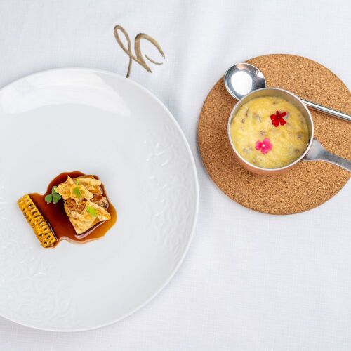 If you have yet to discover the modern cuisine of Trás-os-Montes, the “wonderful kingdom” extolled by the renowned writer Miguel Torga, you cannot miss this restaurant, an example of honesty, passion and a desire to excel. Expertly run by the Geadas brothers, with the media-savvy Óscar in the kitchen while António supervises the dining room and acts as sommelier, it boasts a classic décor and a spectacular view over the city’s fortress. Chestnuts, mushrooms, aromatic herbs, variants of the typical alheira sausage, a cheese trolley... local products take the lead in various menus: a seasonal one, a vegetarian one, and five more dedicated to renowned artists from the Porto School of Fine Arts (Amândio Silva, Júlio Resende, Graça Morais, Armando Alves and Nadir Afonso). A characteristic dish? If possible, do not miss the Bola de Berlim, a dessert often sold on Portuguese beaches and here, in its version, presented as a trompe l’oeil.