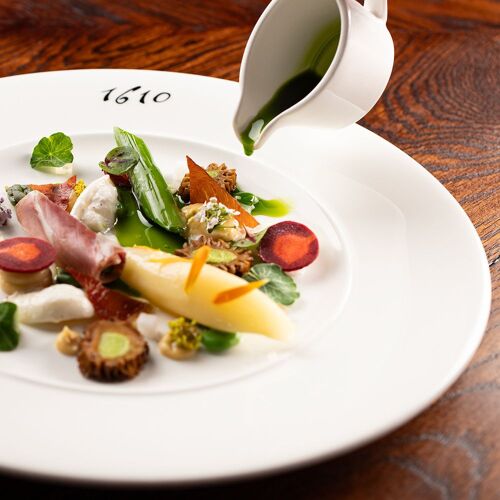 This historic pub – whose name references its origins – is well known as a favourite haunt of legendary Scottish poet, Robert Burns, and with over 300 whiskies available in the snug in which he held court, a drink here is a must. The vintage-style restaurant, with its Tam o’Shanter mural, is an atmospheric place to dine. The menu puts Scottish produce to the fore, and dishes are creative, modern, and full of colour and flavour.