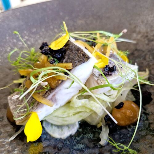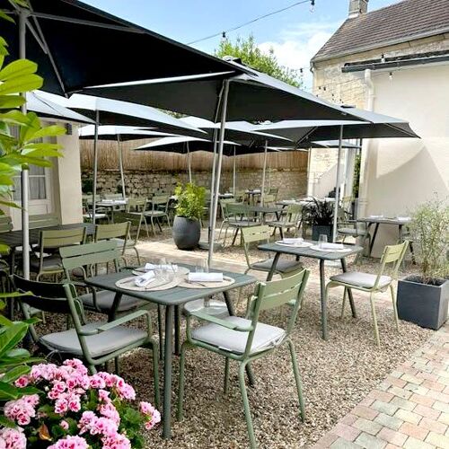 This village inn combines quaint old-fashioned appeal with stylish contemporary details: light stone, exposed rafters, wainscoting, a central fireplace and elegant light fixtures. The menu focuses on carefully crafted dishes made with first-class ingredients, many from local farmers: pollock in herbs, barigoule of spring vegetables and pesto of wild garlic, followed by a vanilla-laced shortcrust pastry, lemon cream and confit, dried strawberries and tarragon sorbet, which shows off the pastry chef training of the chef. Alfresco dining in the garden.