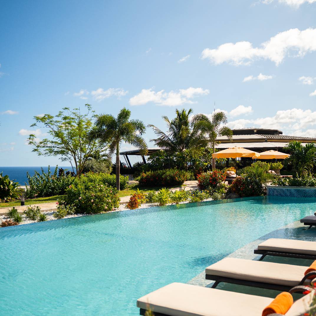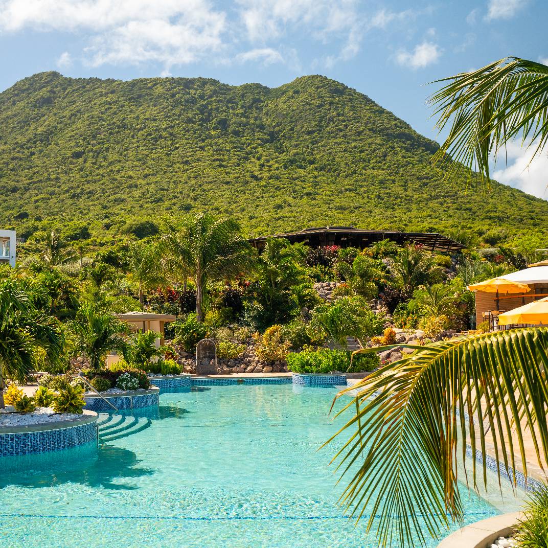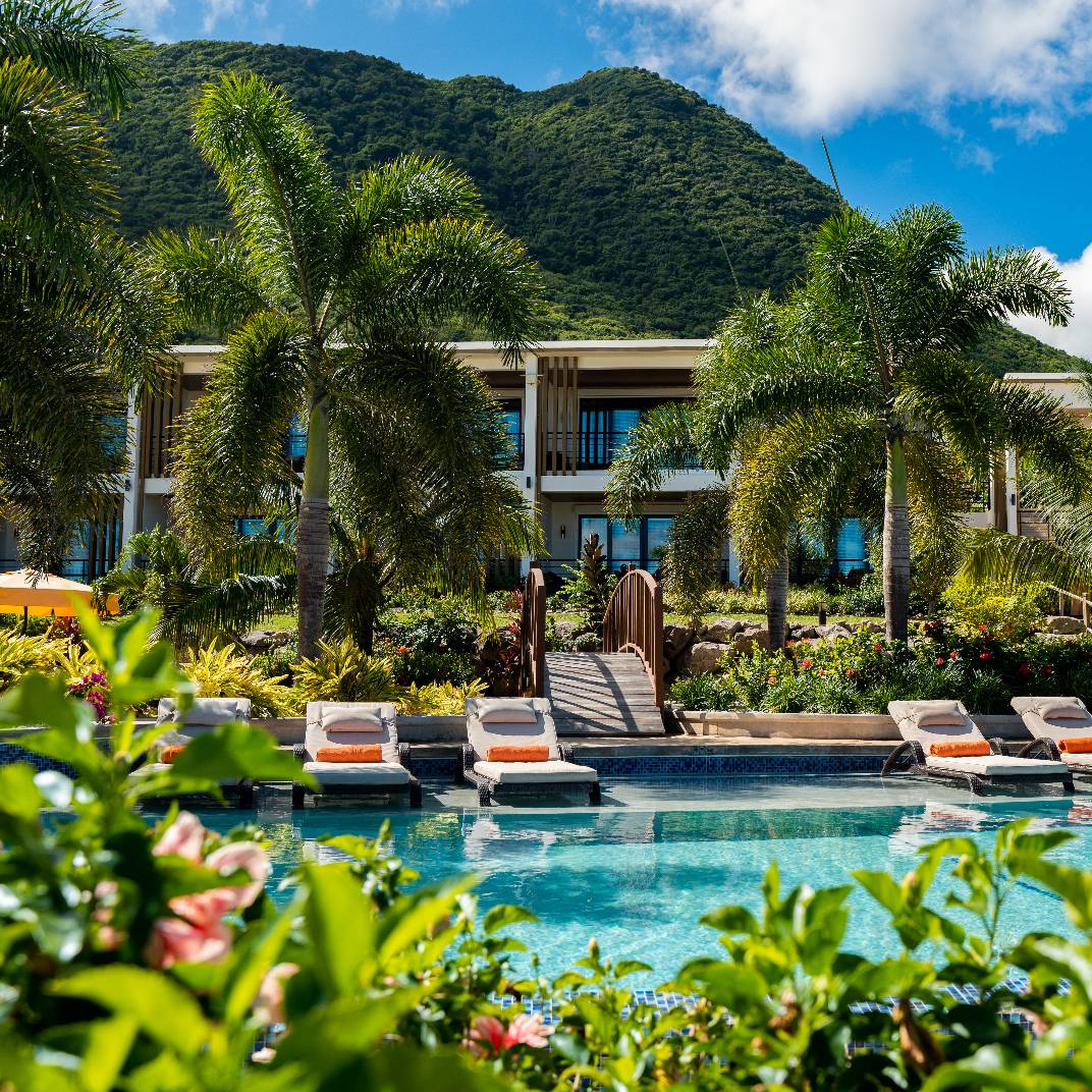A true escape in the Caribbean is harder to find every year, but a place whose address is simply “Behind the Mountain” is a promising one. Golden Rock Resort, on the Dutch island of Sint Eustatius, is made up of a mere 32 rooms and suites, surrounded by a lush 40-acre oceanfront estate that is home to more than 140,000 plants and trees and the largest ocean-fed saltwater lagoon in the Caribbean. The interiors are contemporary yet warm, avoiding both tropical kitsch and aggressive minimalism, and the plentiful comforts make life easy indeed: two pools, a spa, tennis, padel and pickleball courts, a beach club with its own open-air restaurant, and the signature restaurant, Breeze, which highlights local produce grown in the hotel’s own greenhouse.