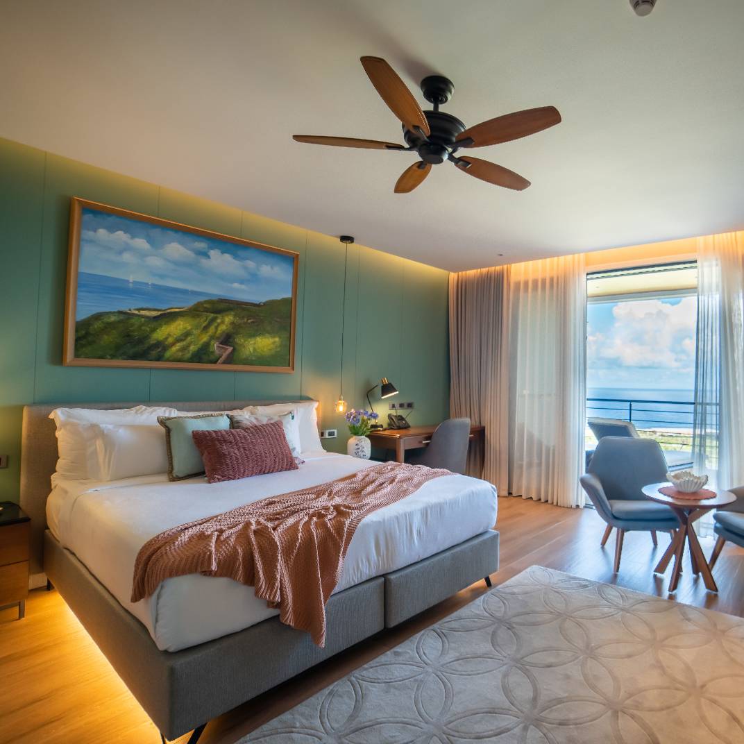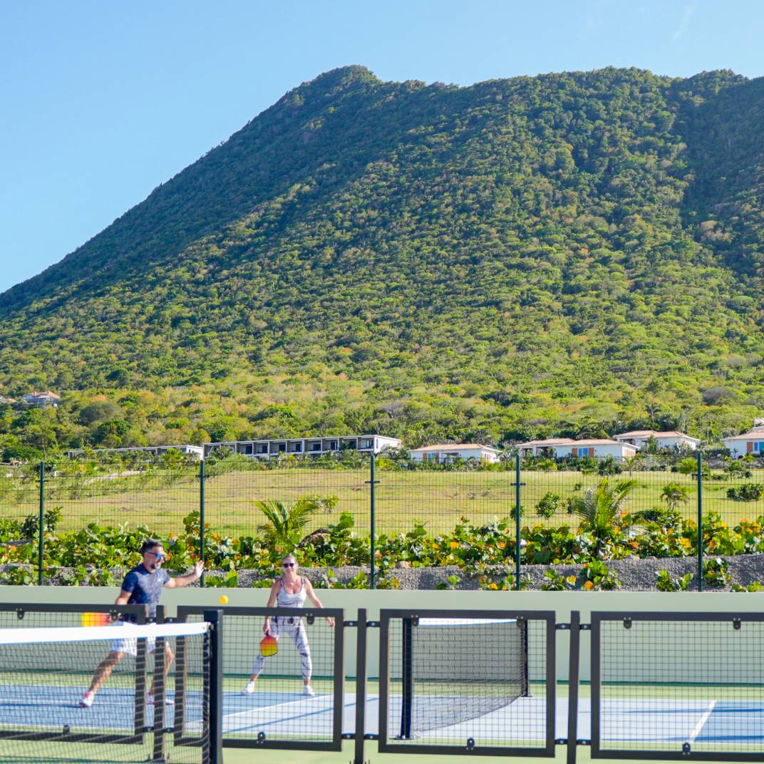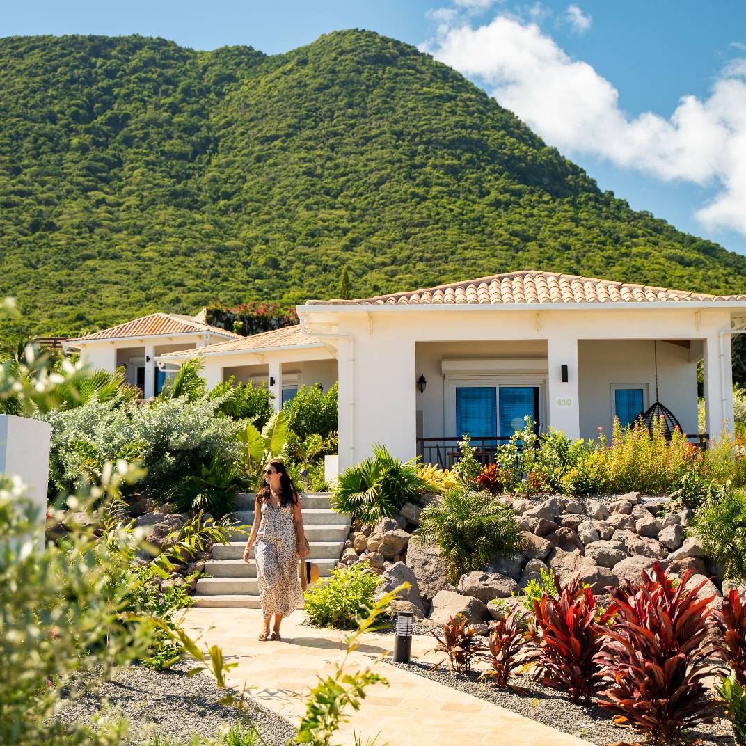 A true escape in the Caribbean is harder to find every year, but a place whose address is simply “Behind the Mountain” is a promising one. Golden Rock Resort, on the Dutch island of Sint Eustatius, is made up of a mere 32 rooms and suites, surrounded by a lush 40-acre oceanfront estate that is home to more than 140,000 plants and trees and the largest ocean-fed saltwater lagoon in the Caribbean. The interiors are contemporary yet warm, avoiding both tropical kitsch and aggressive minimalism, and the plentiful comforts make life easy indeed: two pools, a spa, tennis, padel and pickleball courts, a beach club with its own open-air restaurant, and the signature restaurant, Breeze, which highlights local produce grown in the hotel’s own greenhouse.