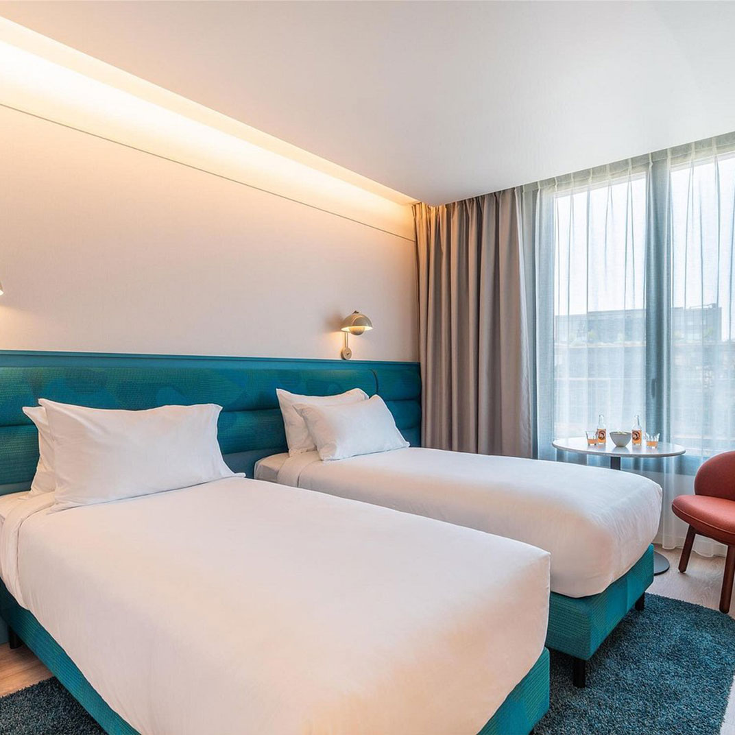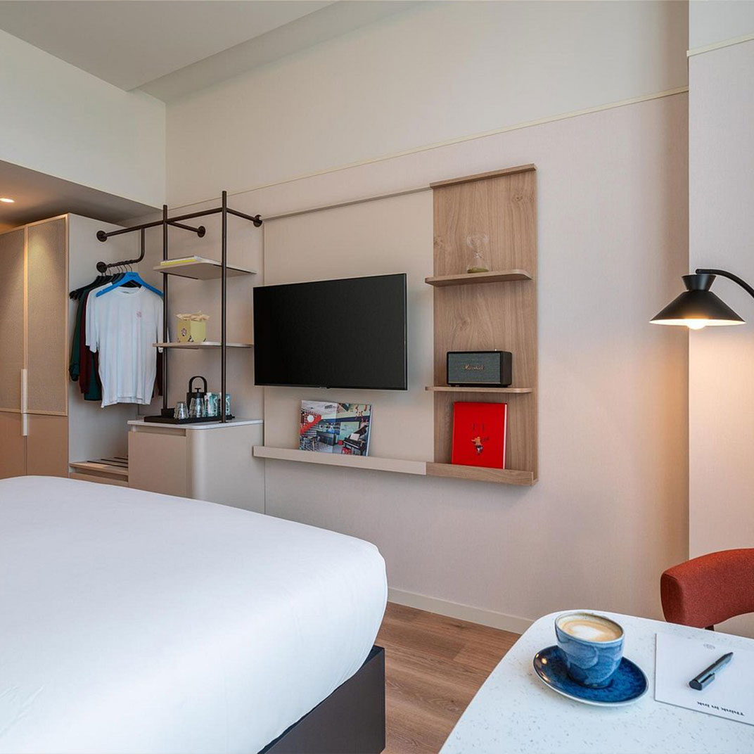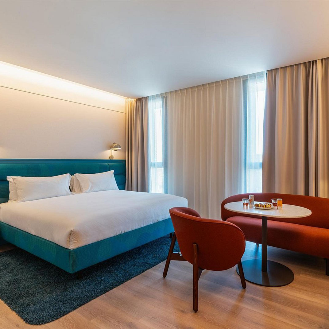 The Social Hub Barcelona Poblenou functions as part hotel, part co-working space, part social experiment. Set in Poblenou, Barcelona's former industrial zone turned creative district, it draws a rotating cast of remote workers, entrepreneurs, and travelers who appreciate communal programming. There is a rooftop pool, a 24/7 gym, and a ground-floor café that doubles as informal workspace. Rooms include private desks and lounge areas for longer stays. Weekly events and workshops happen in shared spaces, fostering the kind of impromptu connections the brand banks on. Twenty minutes from the beach, minutes from Diagonal Avenue.