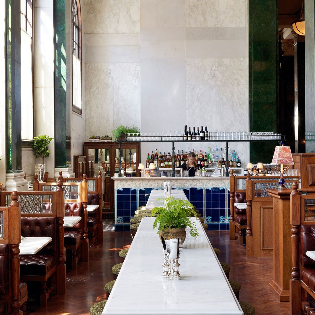 Here, of course, the social life is equally as important as the accommodations. No fewer than seven restaurants and three bars are on hand to keep members and guests adequately restored and refreshed. Services include the lavish Cowshed spa, a hair salon called Ned’s Parlour, and Ned’s Barbershop, for a speakeasy-style shave and a haircut. Safe to say there’s no other hotel, in London or anywhere else, quite like the Ned.