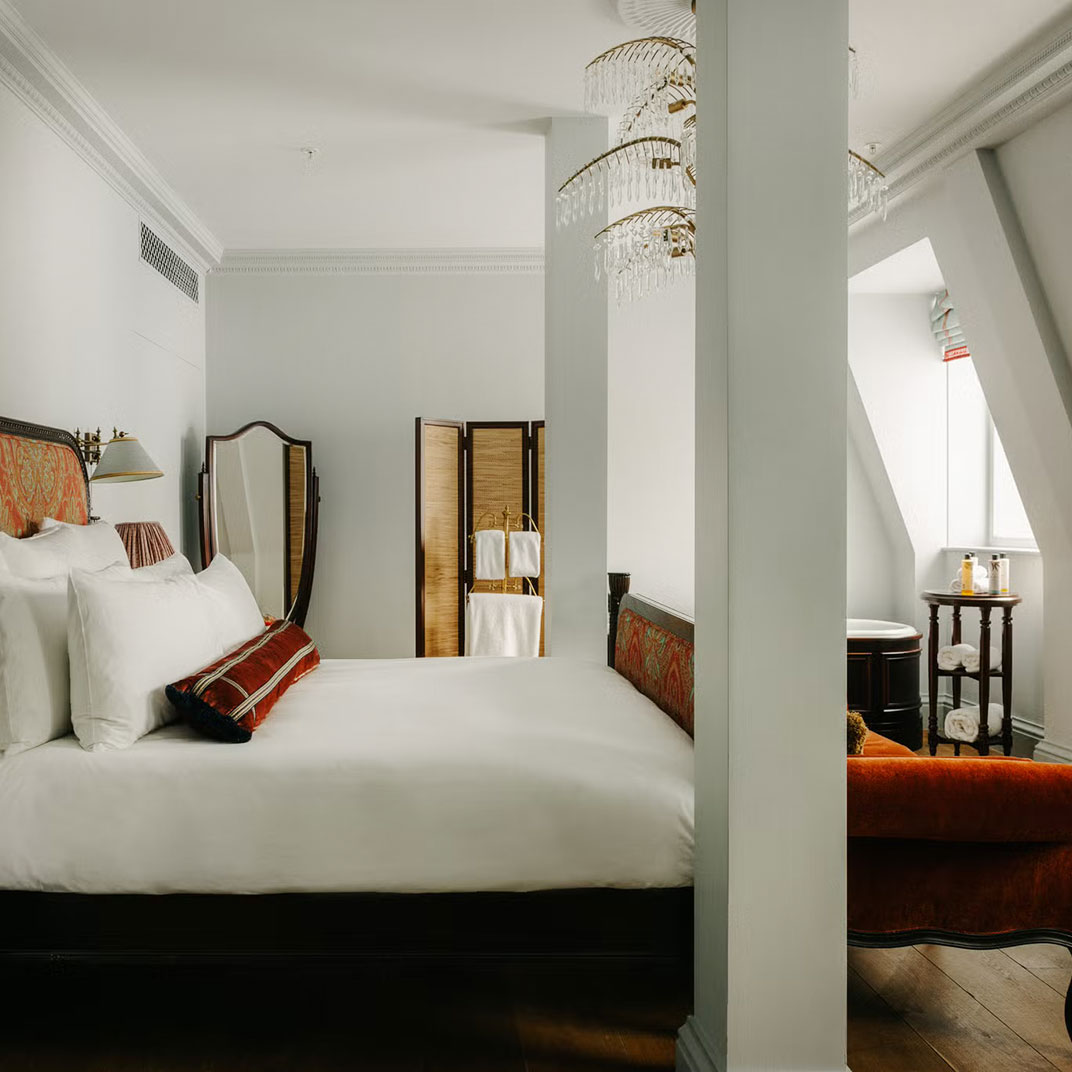 Make no mistake, though — this is a luxury hotel through and through. The Crash Pad rooms are cozy and compact, perfect for an impromptu late night out, but even they come with walk-in rain showers stocked with Cowshed bath products. And further up the range you’ll soon find more typically expansive luxury rooms, and a plentiful selection of suites at the top end, culminating in the Lutyens Suite, a 100-square-meter residence occupying the old bank chairman’s office, complete with a private elevator.