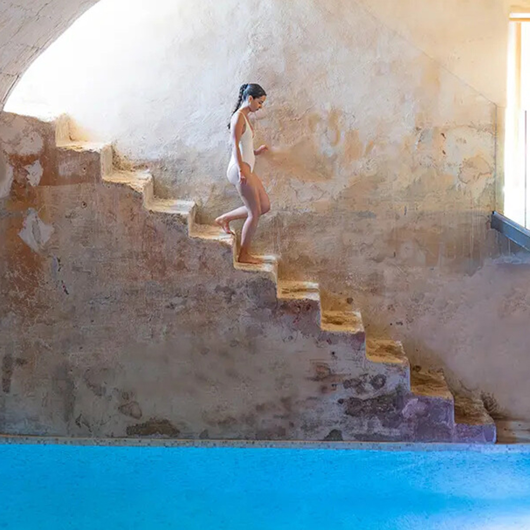 There’s also a spa, featuring a hammam, sauna, massage, and a lap pool set beneath the dramatic vaulted ceiling of the estate’s old cistern, while a second pool stands outside under the Mediterranean sun. The restaurant, Nura, serves contemporary Spanish cuisine. And for another option, there’s Fontenille Menorca’s other property, Torre Vella, housed in an old watchtower a ten-minute drive away.