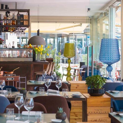 The small, classic Rosabianca hotel on the seafront in Rapallo has begun to improve its facilities, starting with its restaurant where large windows (which can be opened in summer) overlook the promenade, and its intimate, elegant interior with subtle lighting and a relaxing ambience. The cuisine focuses on fish and seafood which are skilfully prepared so that the quality of the superb ingredients shines through, while the service ensures that guests are looked after with discretion and professionalism.