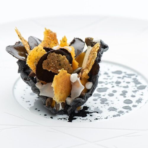 Nederlandse topproducten en internationale smaakmakers komen hier samen in zeer bewerkte en soms complexe bereidingen. De technisch begaafde chef schuwt de contrasten niet. Hij kopieert niet, hij creëert. Dat geldt zowel voor zijn vegetarische menu als creaties met vis en vlees. Chef Schutte gaat even gezwind een kanjer van een langoustine pimpen met chipotle, kefir limoen, cacao en zilte groenten als dat hij een sappige moot rog topt met poeder van aardbei en daarbij onder meer oester, artisjok en een diepe jus van tomaat met jalapeño serveert in een verbluffende harmonie. Verwacht u aan een ware smaakexpeditie!