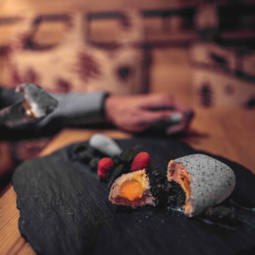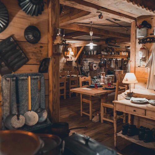 A mountain chalet decor with exposed beams, a traditional dining room with a fireplace in the middle and decorated with a collection of bells – it doesn't get much more inviting than this! The kitchen serves both traditional dishes, including beef tenderloin with a morel mushroom sauce, and slightly more modern and creative recipes such as carpaccio of sea bass with passion fruit. For Savoyard specialties, guests can head to La Baratte, the restaurant's ground-floor eatery, to tuck into authentic cuisine in a friendly atmosphere.
