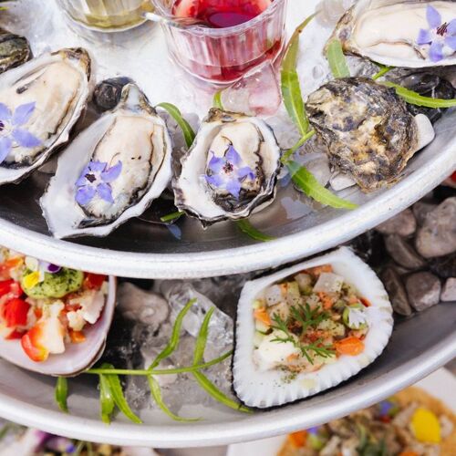 "We have 3 farms that grow specifically for Deckmans group. We source only legal, responsibly grown or foraged Baja California mollusks for our ingredients. We reuse all waste shells as erosion control, grind up for our chickens and use for calcium in our vineyards and farms. We make our own olive oil and use only salt from San Felipe."
