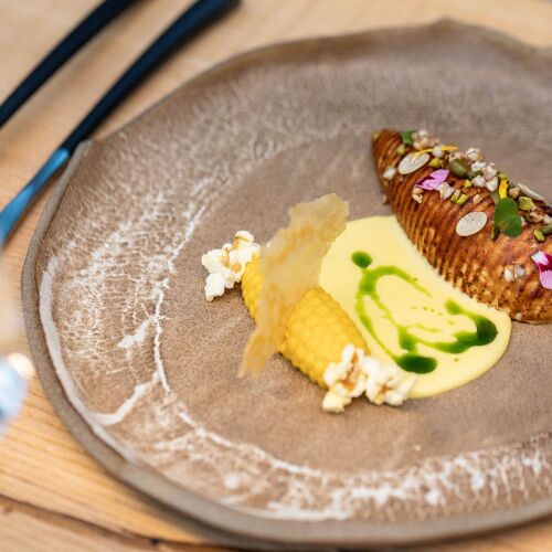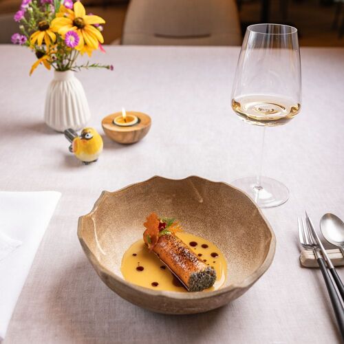 This space in the multifaceted Kulturhof is geared towards the traditional German card game "Schafkopf". But four days a week, it becomes a fine dining restaurant with four tables. A set menu with pleasingly pared-down dishes is proposed – these range from down-to-earth to classic or modern and creative. A vegetarian version of the menu is also available. Martin Bielik, your dedicated sommelier, provides astute wine recommendations. An amusing touch: the menu and wine list are laid out on the table as if they were a game of cards.