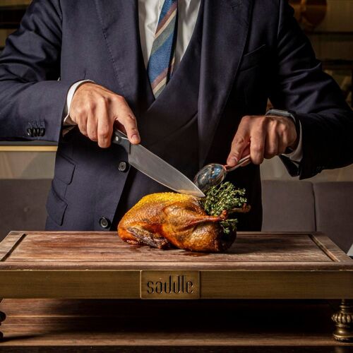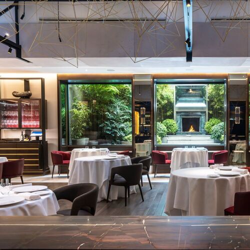 In essence, and despite the more modern look, Saddle replicates the philosophy and excellence of luxury restaurants from days gone by, hence the impeccable service and levels of comfort which enhance superb contemporary cuisine that is built around classic recipes. The overall ambience is one of space, light and elegance, and includes several private rooms plus an inner garden. The classic-contemporary menu (with media ración options) is complemented by a tasting menu. The constant movement of trolleys (bread, butter, cheese, spirits etc) adds a further special touch!