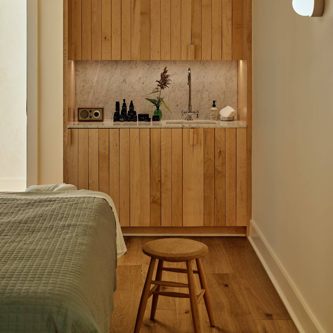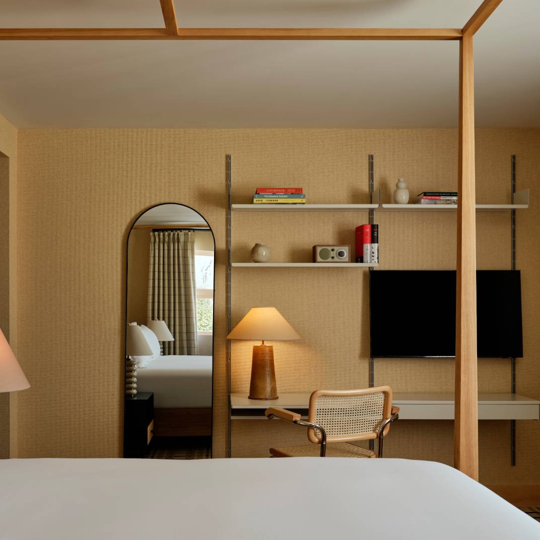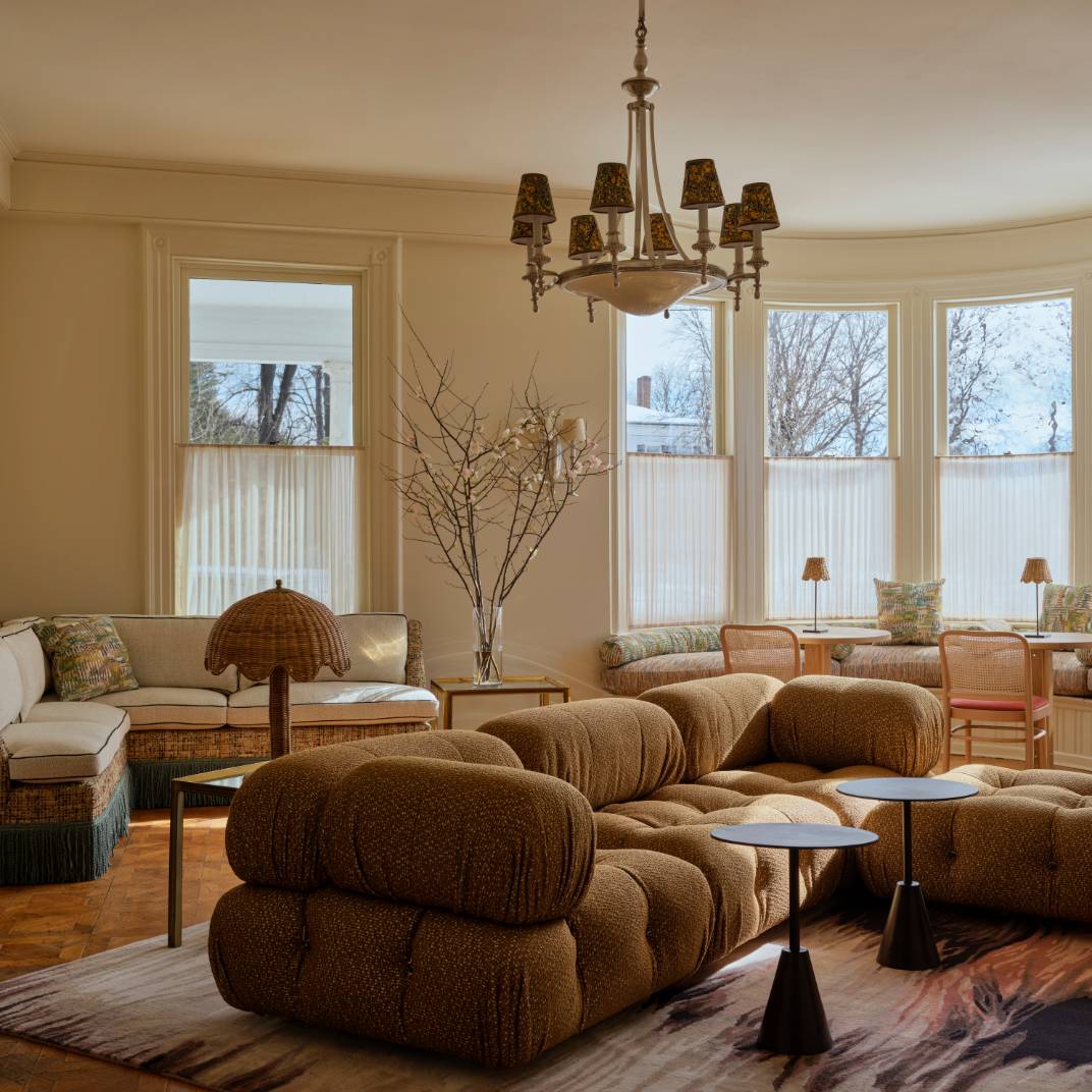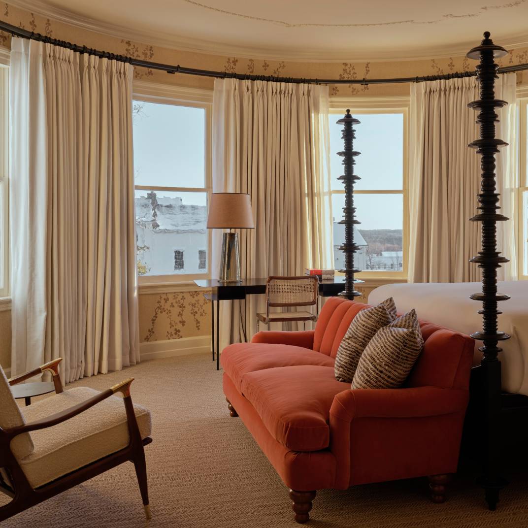 Belden House & Mews brings full-scale hospitality back to Litchfield’s center, more than a century after the town’s original grand hotel was lost to fire. Built in 1888 by Dr. Charles O. Belden, the main house has been redesigned by Champalimaud Design, with Victorian staircases, original fireplaces, and subtle updates that preserve the building’s character. Behind it, a 1959 mews holds 31 light-filled rooms with custom furniture and and garden access. The village green is just around the corner, but the atmosphere here feels worlds apart.