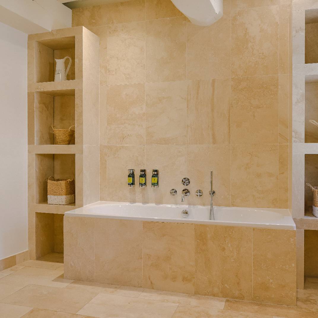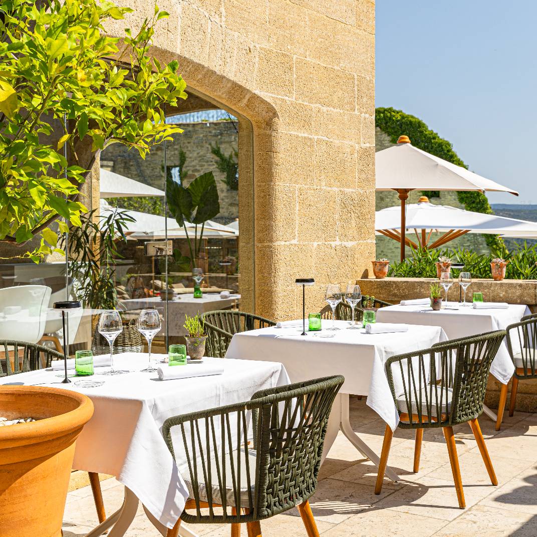 Within these stone walls is a whitewashed, minimalist, surprisingly modern boutique hotel, and an impressively luxurious one at that. The rooms, by a Parisian interior architect, effortlessly blend contemporary design with historical architecture, and include comforts like Bose sound systems, L’Occitane bath products, and Nespresso machines.