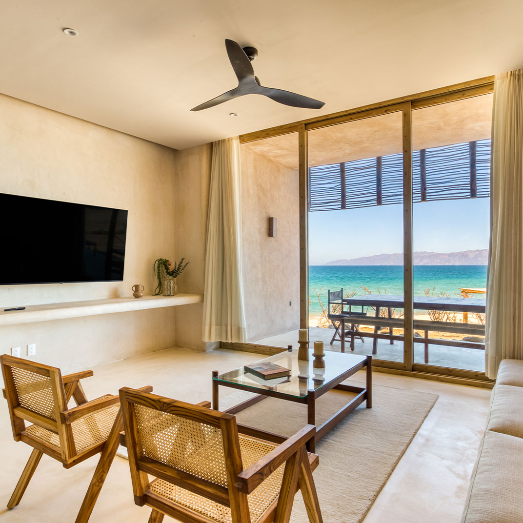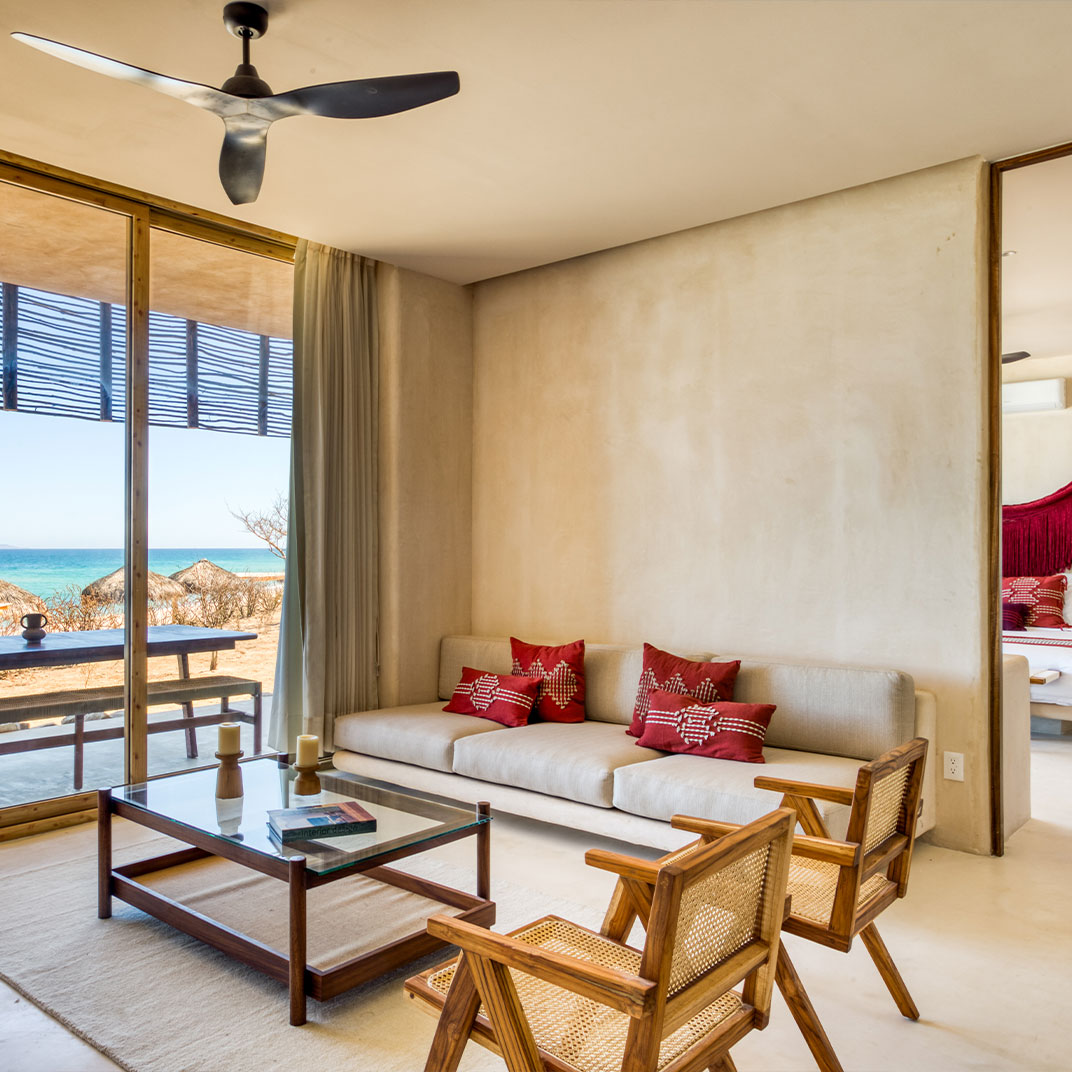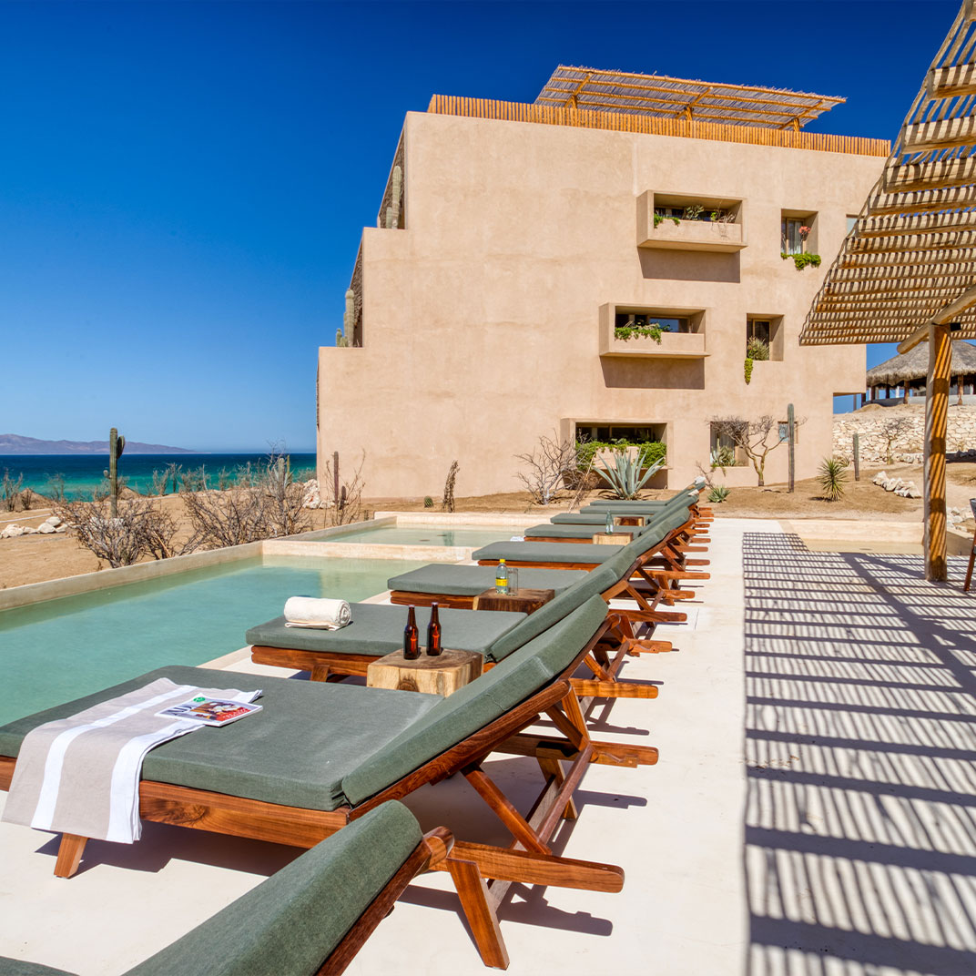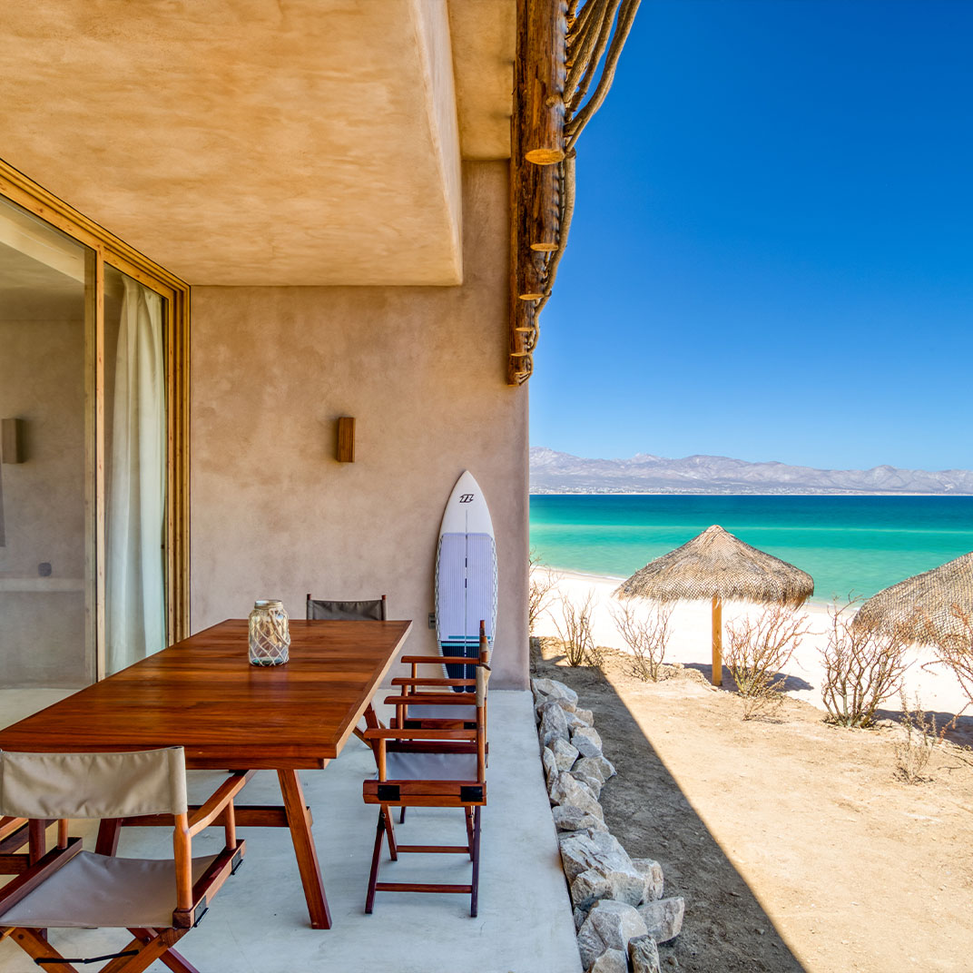 The activities on offer include hiking, mountain biking, padel, fishing, and “seafari” excursions, in addition to the aforementioned surf-adjacent sports. Cambujo, the restaurant, specializes in the local traditions of the Baja peninsula.