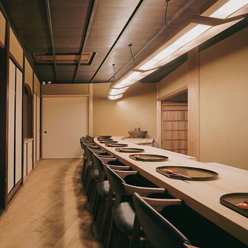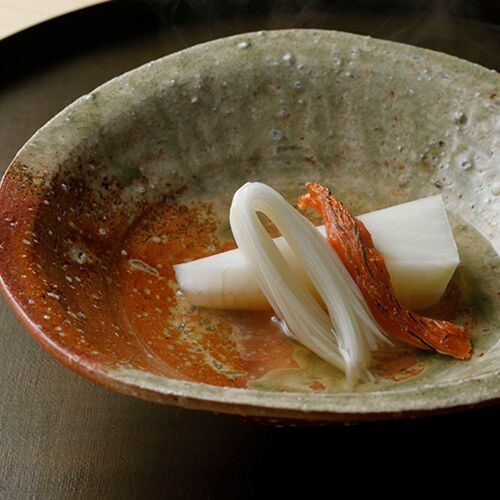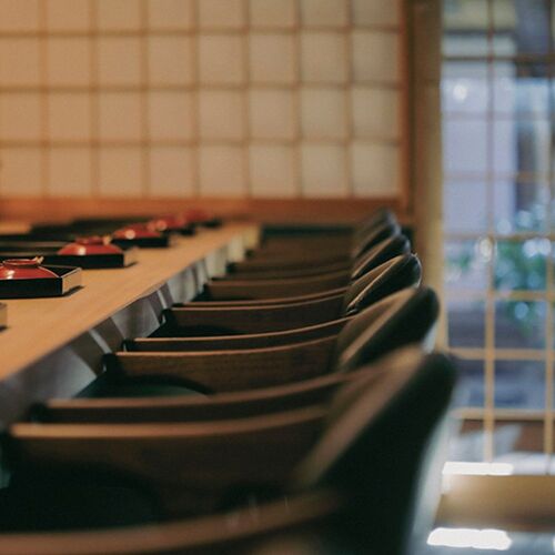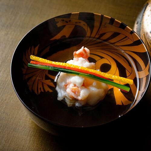 Guests are greeted with a cup of Kakegawa tea from the chef’s native Shizuoka, while kukicha, tea made from tea twigs, or ‘genmaicha’, green tea made from roasted brown rice, is served between courses. Combinations of foodstuffs convey the distinctiveness of the menu. Fruit is paired with fish and vegetables as their natural sweetness and acidity adds depth and contrast. Meat dishes are a vital part: depending on the season, diners may be entertained by meat hot-pots created before their eyes. The chef caters to guest preferences with a flexible imagination, pursuing an experience tailored for each diner.