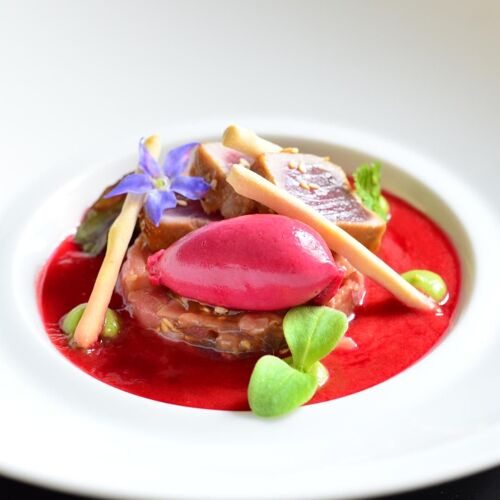 The philosophy of seasoned chef Jean-Luc Rocha (who has captained many Michelin-starred restaurants) is that one experienced chef is worth two – especially one who has been a Meilleur Ouvrier de France since 2007. On every plate, you can sense the work of a wise and accomplished chef who masters all the tricks of his trade without ostentation; this certainly applies to his crispy "croque juste croustillant" with a poultry stuffing and herbs – a masterclass in finesse. From start to finish, the cooking and seasoning are deftly executed, a case in point being the lovely rare-cooked saddle of veal accompanied by seasonal vegetables glazed with butter and a meat jus. Professional service in the refined setting of a townhouse.