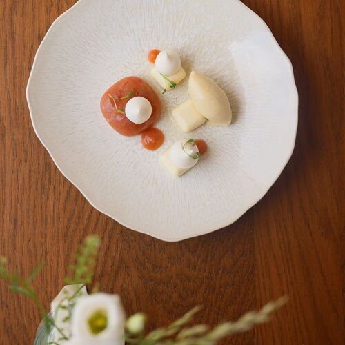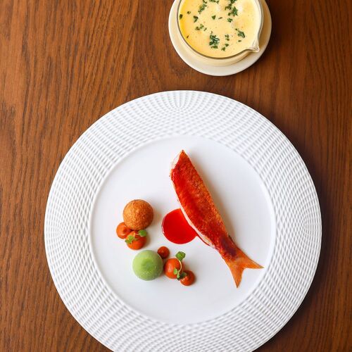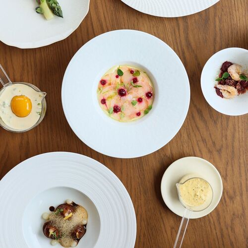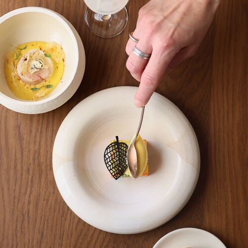 Clinging to the rocks at the entrance to the Vallon des Auffes, Coline Faulquier's new restaurant commands a dramatic view over the Mediterranean, the Château d'If and the surrounding islands. In a dining space characterised by soft neutral tones, clean lines and floor-to-ceiling windows, the Marseille-based chef serves up vibrant, inventive and precise seafood cuisine. The dishes, often vegetable-forward, play on contrasts: hot/cold (confit artichoke, raw "cappuccino", basil and bottarga), raw/cooked (raw and cooked prawns, prawn-head fumet, Timut pepper, almonds) – they have real character, asserting their distinct culinary identity. And we would expect nothing less from this dynamic chef! The kitchen ensures freshness through direct sourcing from the port's local fishermen.