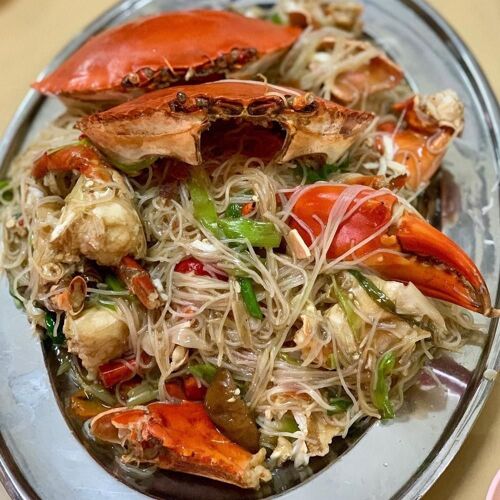 Fried rice vermicelli with crab, available for dinner, is the main event. The gigantic crab is loaded with seafood flavour; the vermicelli pick up the juices nicely, exuding scallion, ginger and chilli aromas. The other seafood dishes are also tasty.