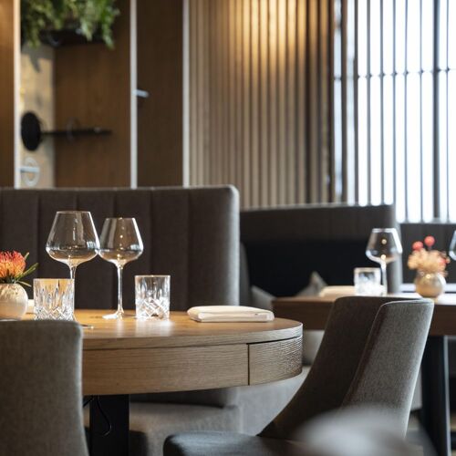 This restaurant is in Der WILDe EDER, a tasteful wellness hotel, the name of which refers to patrons Eveline Wild and Stefan Eder. The vibe is chic, the glass-paned façade affords a view of the greenery – with a bit of luck you'll get to take in the sunset. The menu consists of seven courses and various small bites, enhanced by the nice idea of each course being accompanied by a story on a card. The chef serves the dishes himself and explains his philosophy, which revolves around nature, seasonal produce and sustainability. He also has a soft spot for vegetarian dishes. The crowning finale is the patronne's desserts! The friendly and competent team will recommend the right wine to accompany the creative dishes; the selection comprises over 450 items, including many regional wines.