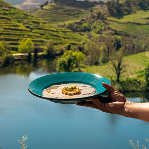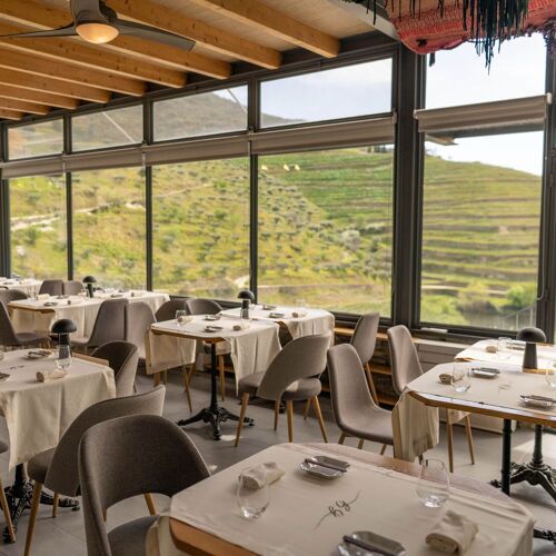 If you’re looking for somewhere with good food and stunning views, this is the perfect place. Part of the quinta of the same name, at the confluence of the Douro and Tagus rivers, the restaurant boasts a welcoming ambience and extensive windows to maximise views of the spectacular landscapes here. It is run by the Geadas brothers (chef Óscar Geadas and sommelier António Geadas), who are known for the success of their restaurant in the north of the country. The focus is on the culinary traditions of the Trás-os-Montes region, which is reflected in deliciously fresh fish dishes and perfectly prepared meats. Make sure you save space for the sublime desserts!