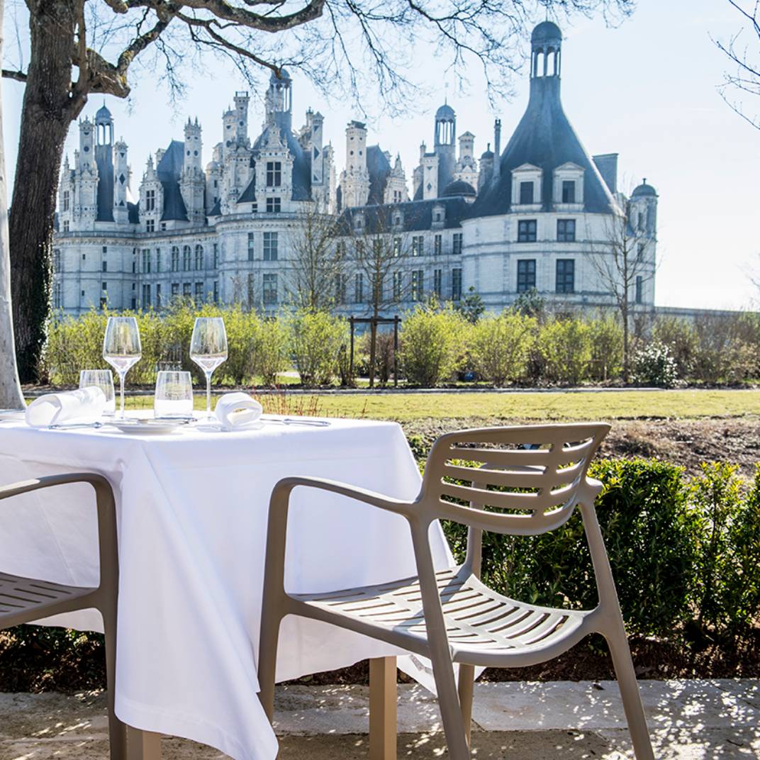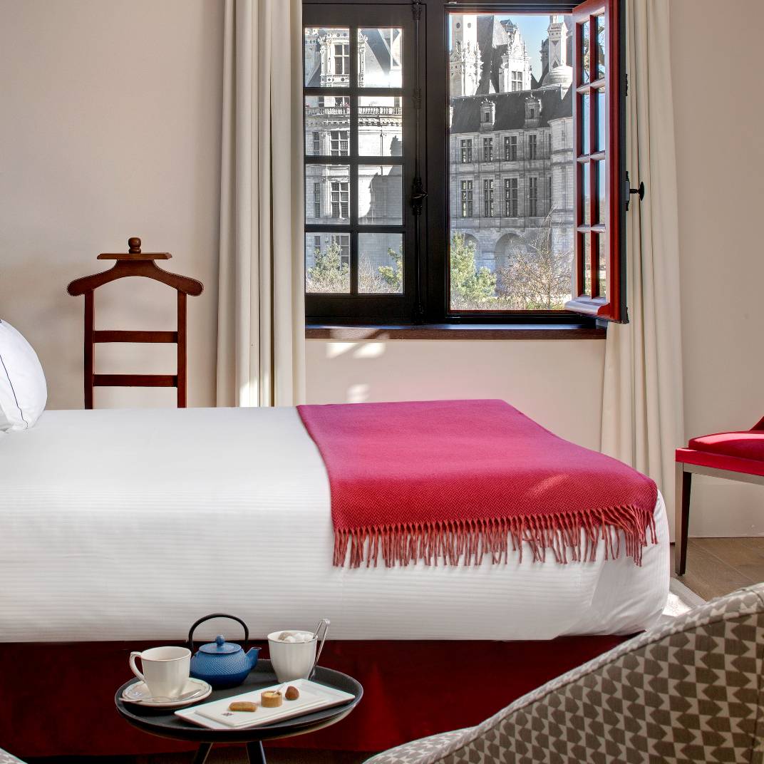 Many rooms and suites, of course, look directly out at the real thing, as does the terrace of the restaurant, where Lyonnais chef Joseph Viola serves fresh, seasonal French fare in a pair of dining rooms furnished with works by contemporary designers. There’s a small spa, for a bit of bodily relaxation, and the grounds offer ample opportunity for recreation — while the hunting pack is retired, you can tour Chambord and its surroundings on foot, on a bicycle, or even by rowboat.
