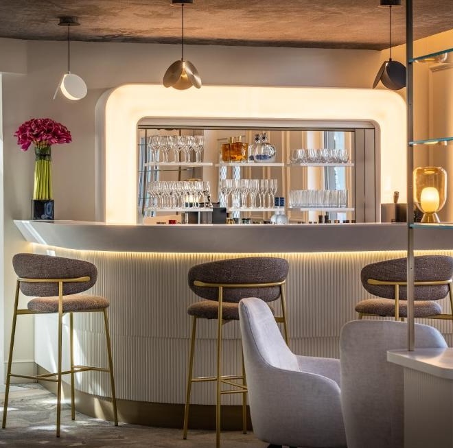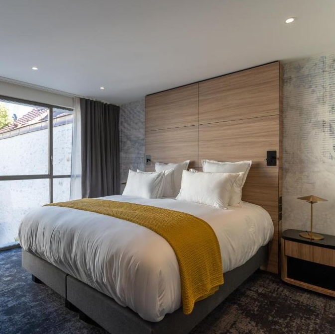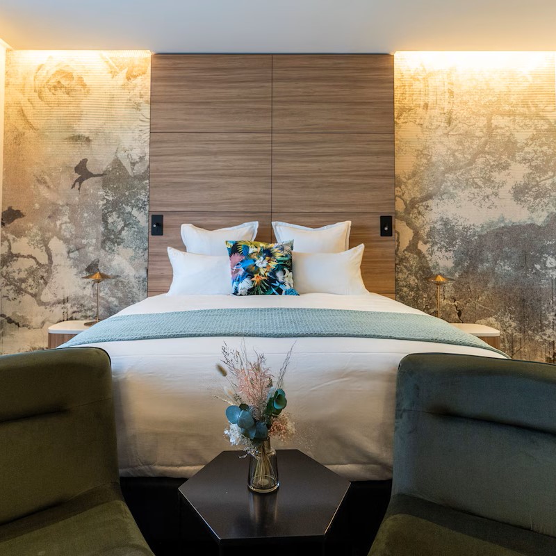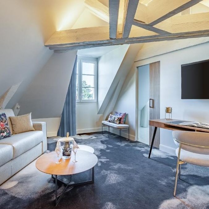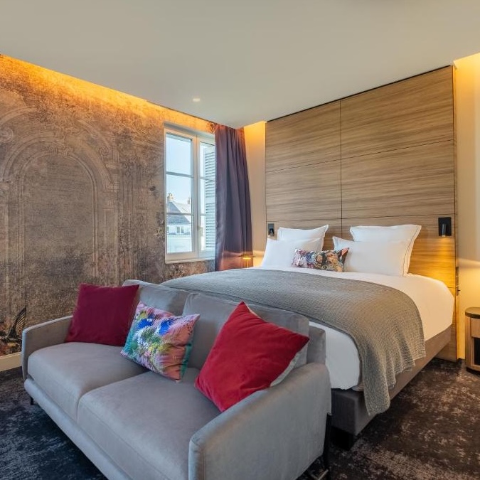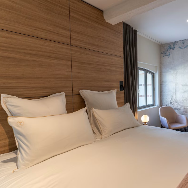 The Loire valley town of Tours is not yet a hotbed of high luxury, but Les Trésorières illustrates the way forward. Though central — the gourmet market Les Halles is adjacent — it achieves an air of comfortabe seclusion thanks to its courtyard situation. Within are 21 rooms and suites that confidently combine luxe comforts, modern style, and antique influence. A wellness area offers an indoor pool as well as a sauna and steam room, while the hotel’s salon pours wines and cocktails, and opens onto the courtyard space.