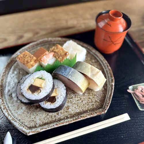 A Kyoto eatery to drop in often and casually. Izugen is a much-loved tradition from the old days, jealously guarded by its third-generation chef. Rice, the essential base of sushi, is cooked with kombu and bonito. Order the Kyoto sushi mixed platter and savour three styles of sushi: bo sushi with mackerel, hako sushi and maki sushi. Sushi is not hand-formed, so there’s no counter, in true Kyoto style. A picture of a maiko hangs on the wall because, the current chef says, he fell in love with it at first sight; he believes it is auspicious, as the maiko invites customers to ‘maikomu’, or ‘come in’.